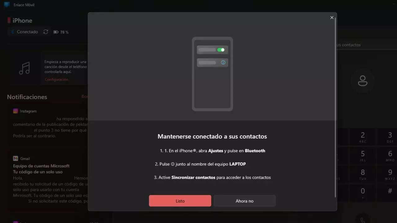 When you pair your iPhone or Android with Windows, a new application will appear on your computer called Mobile Link. From there, you can carry out different functions on your mobile from your PC. That is, if you have stored your smartphone or are charging it, you will be able to call or see notifications from social networks instantly.