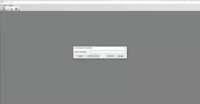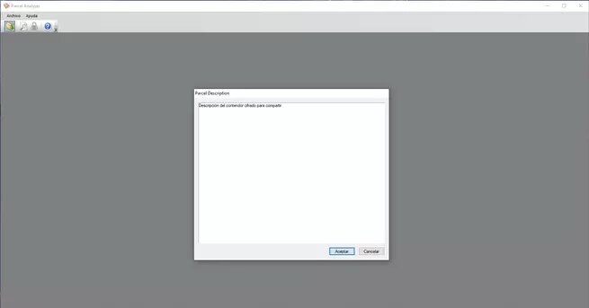 The program itself will allow us to "analyze" the encrypted container to check the files inside it and also to check the integrity of each and every one of the files. We will choose the "Analyze" option, it will show us the message that we have configured publicly, and then we will have to enter the password to decrypt the information. Finally, it will show us all the encrypted files and folders in the container.