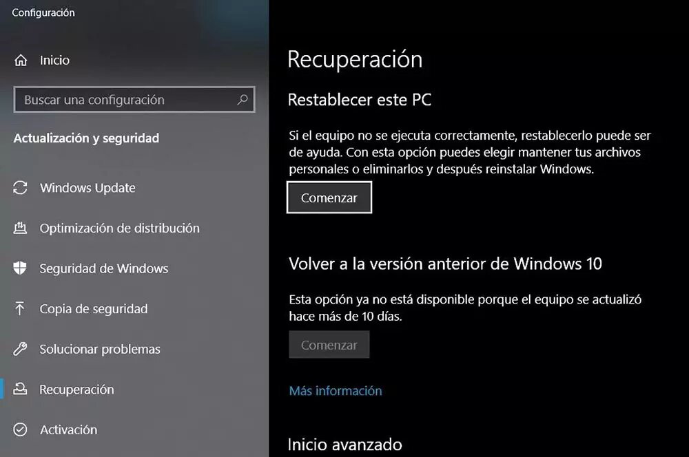 If all this fails, you can always resort to the much-helped restore point. You can do a restore directly from a recovery USB or from the terminal's own options from the Recovery section of Windows options. You can choose whether to remove your files or keep them, the second being the second option if you don't want to lose anything you have saved on your machine.